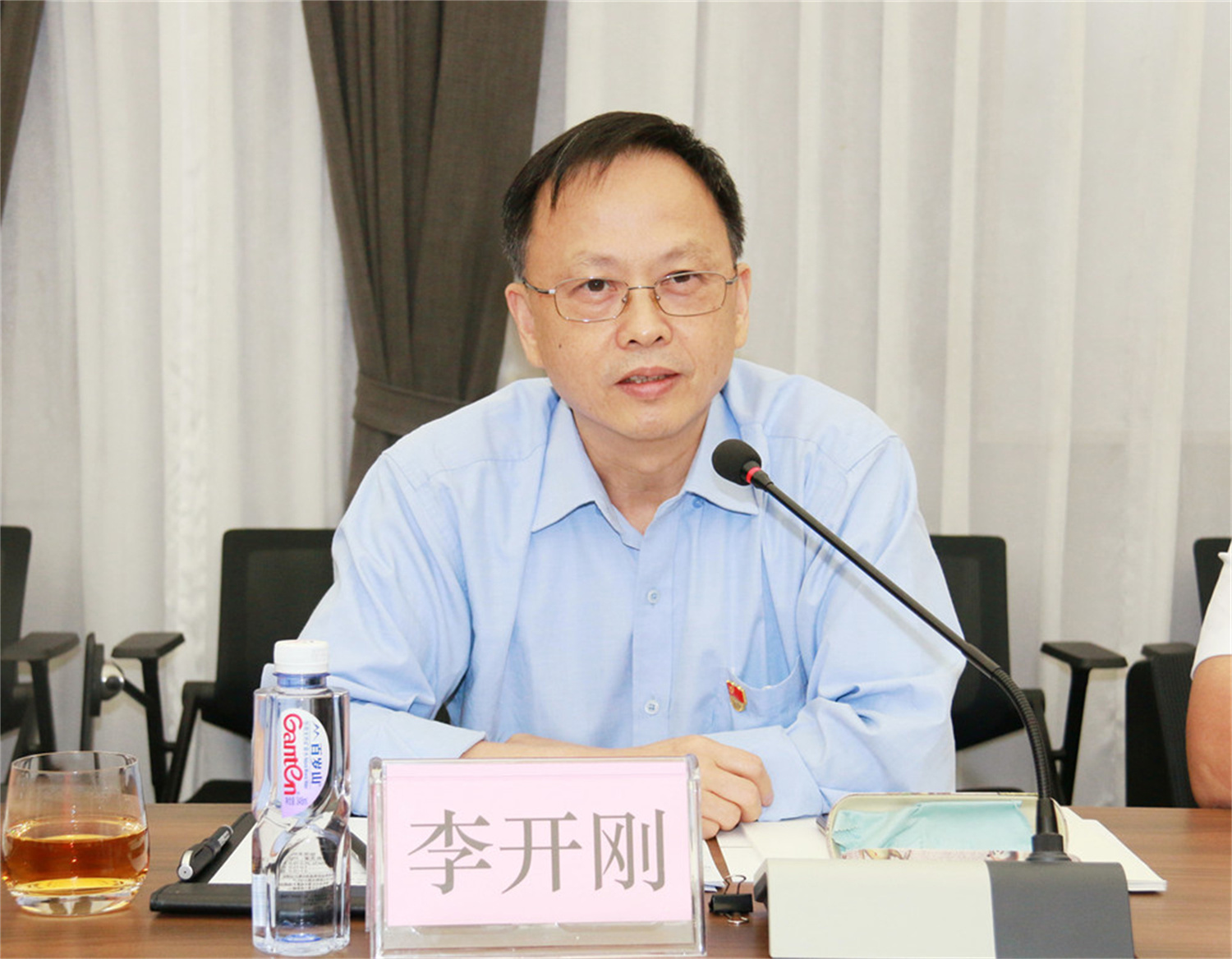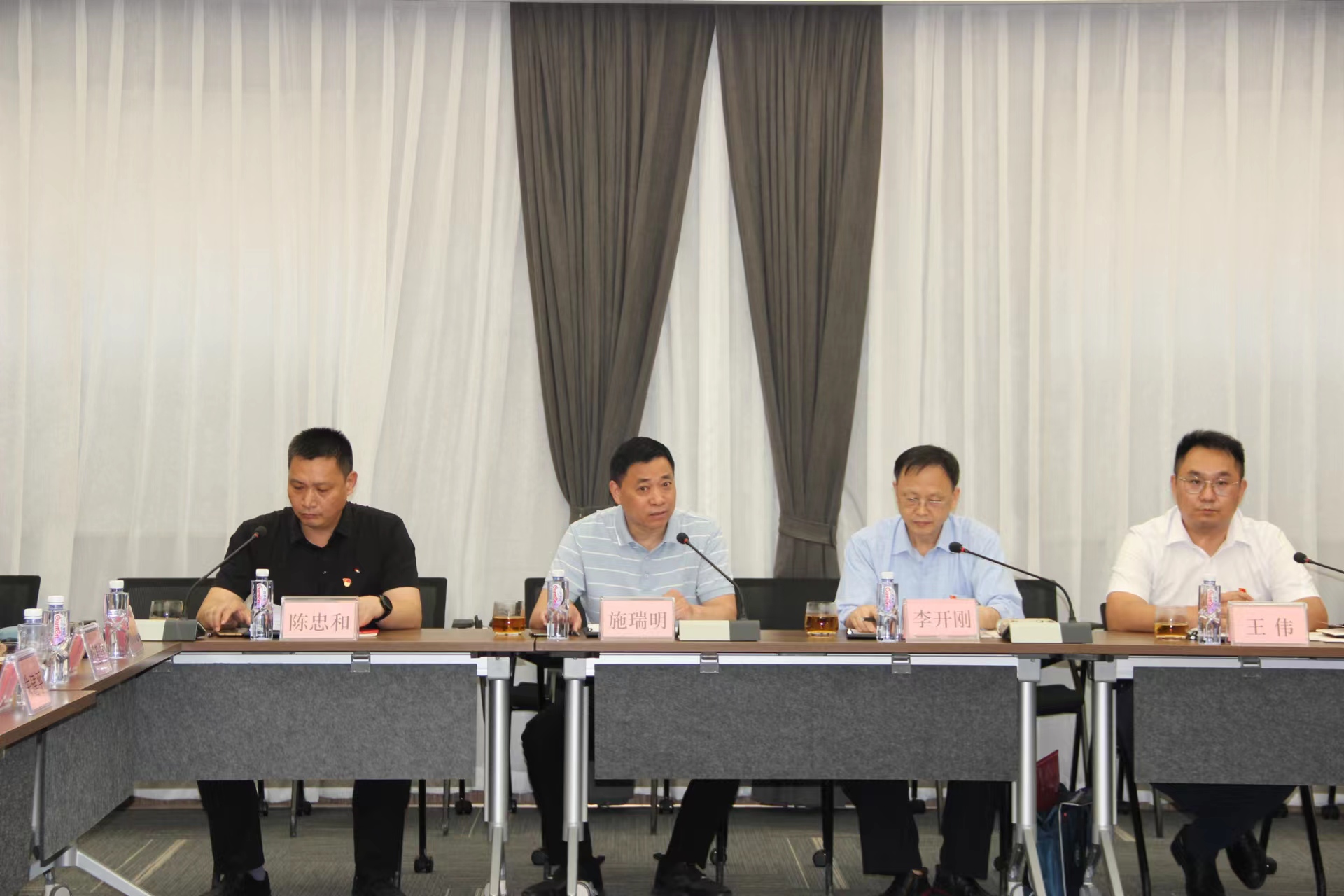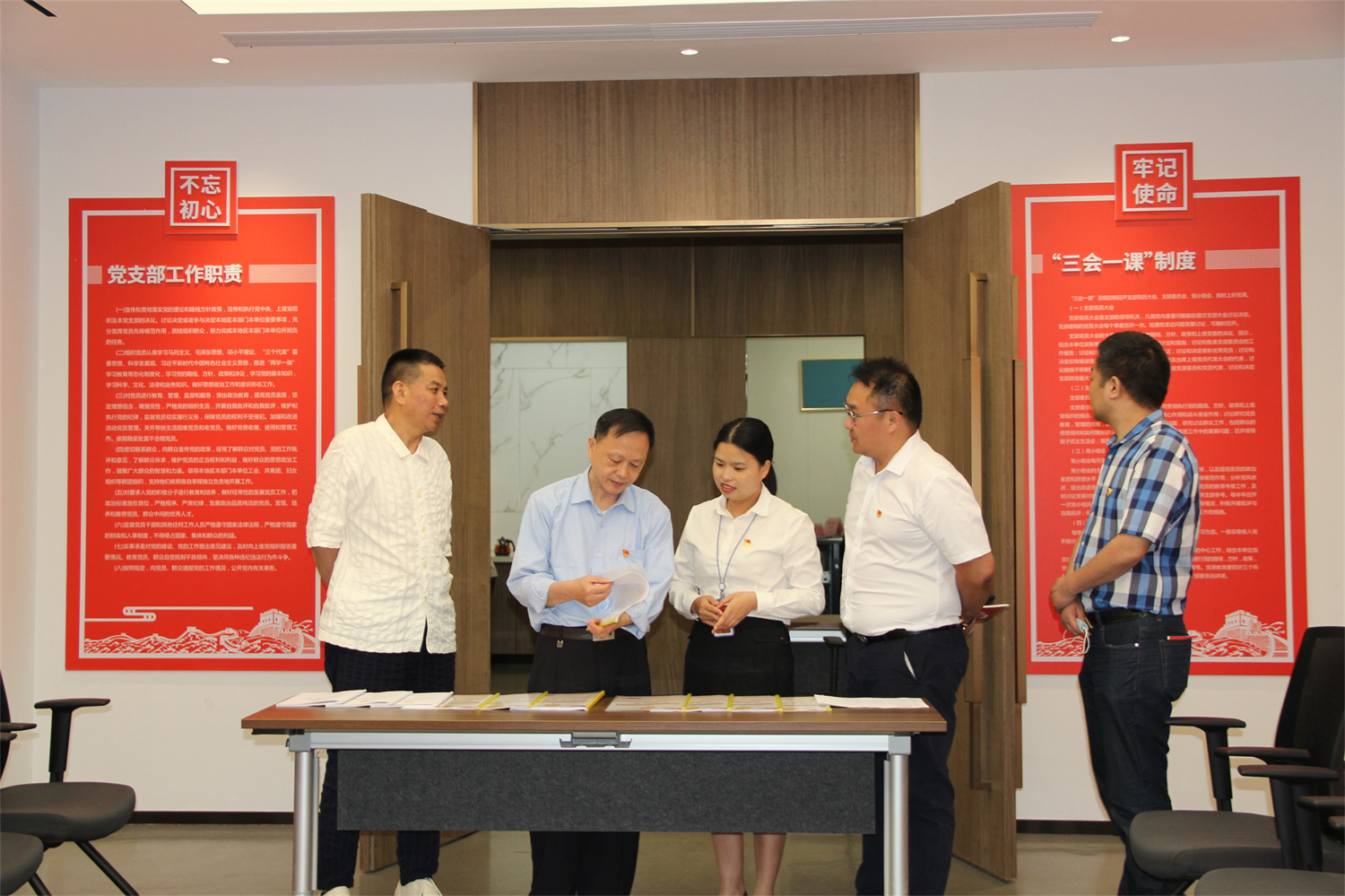 ▲李开刚(右三)听取bsports必一体育党支部党建情况介绍
