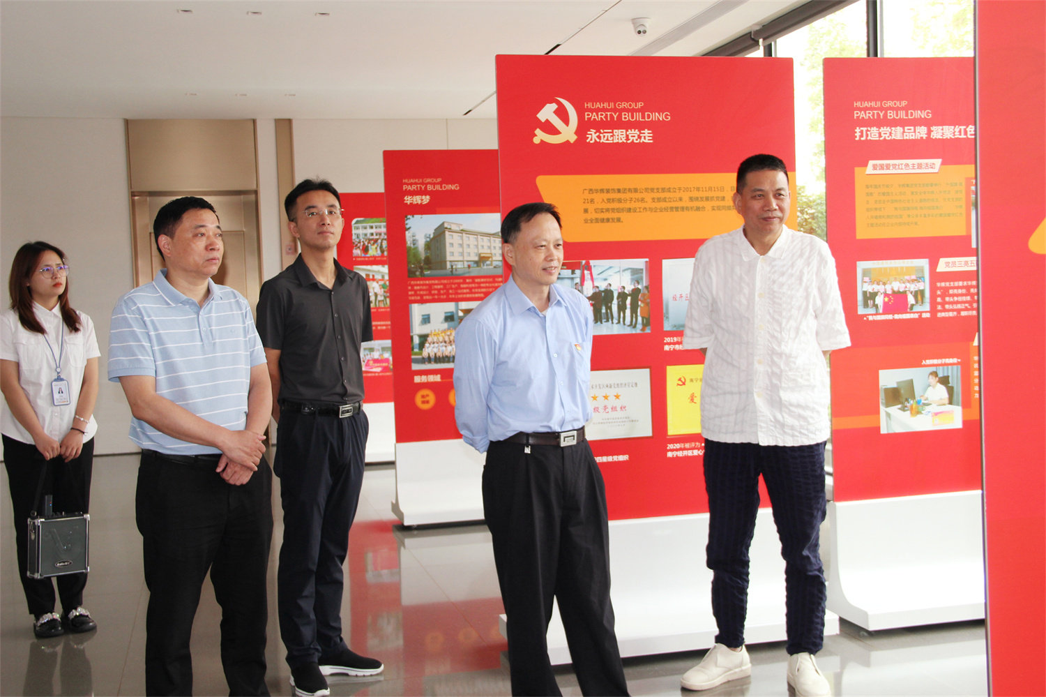 ▲李开刚(右二)参观bsports必一体育党建阵地
