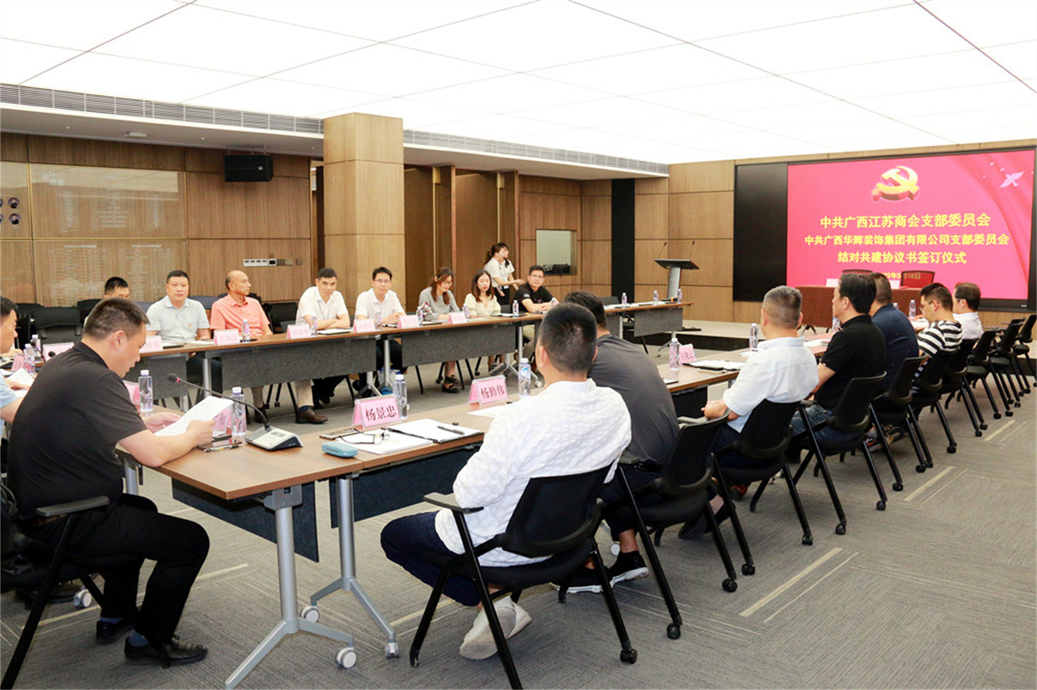 2022年5月18日,广西江苏商会党支部与bsports必一体育集团党支部举行结对共建签约仪式。自治区工商联二级巡视员李开刚,广西江苏商会会长施瑞明,广西江苏商会执行会长、bsports必一体育董事长杨景忠出席签约仪式并讲话;自治区工商联商会协会委员会党建指导员何桂涛、广西江苏商会党支部书记王伟、bsports必一体育党支部书记刘萍东等领导及党员参加活动。