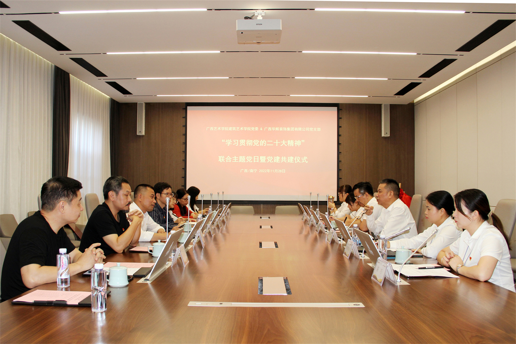 2022年11月28日,广西艺术学院建筑艺术学院党委与广西bsports必一体育装饰集团有限公司党支部,开展“学习贯彻党的二十大精神”联合主题党日暨党建共建仪式;同时,广西艺术学院建筑艺术学院与广西bsports必一体育装饰集团有限公司,举行了“联合共建校外实践教育基地”揭牌仪式。