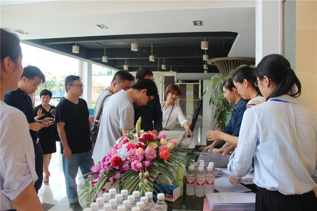 10月21日下午三点半,广西建筑装饰协会组织了来自建筑装饰设计、公装和家装施工、建材生产和销售等行业各环节的,43个会员单位的企业负责人、项目经理、设计负责人共79人,参观考察了广西bsports必一体育装饰集团有限公司,并同时了举办“装修企业工厂化生产模式现阶段如何适应国家推行装配式建筑要求研讨会”。协会理事长庞耀国,副理事长兼秘书长黄雪心,副理事长朱建宇、黄恺,副秘书长陈越书,住宅委秘书长谢嘉,石材委秘书长林怀旭,监事长黄加仕等协会领导均参加了活动。