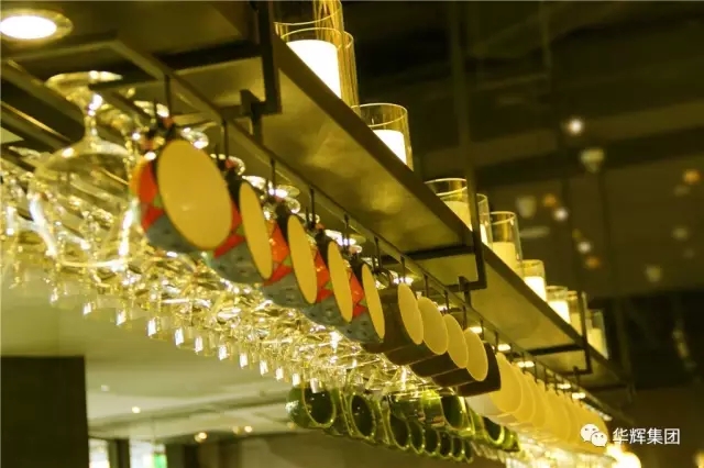 酒柜的灯光颜色与酒瓶质感相碰撞产生的艺术效果。