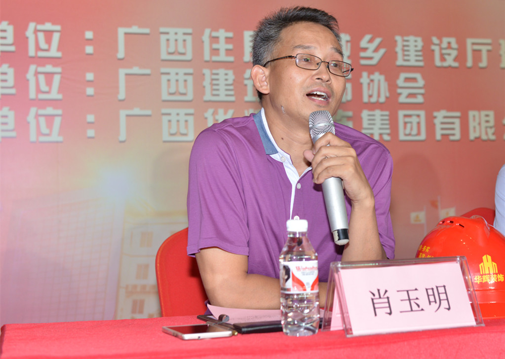 广西住房和城乡建设厅建筑市场监管处李兰芝出席了观摩会并致辞,广西建筑装饰协会会长庞耀国出席并主持观摩会,广西建工集团代总工程师、技术中心主任肖玉明出席并发言。