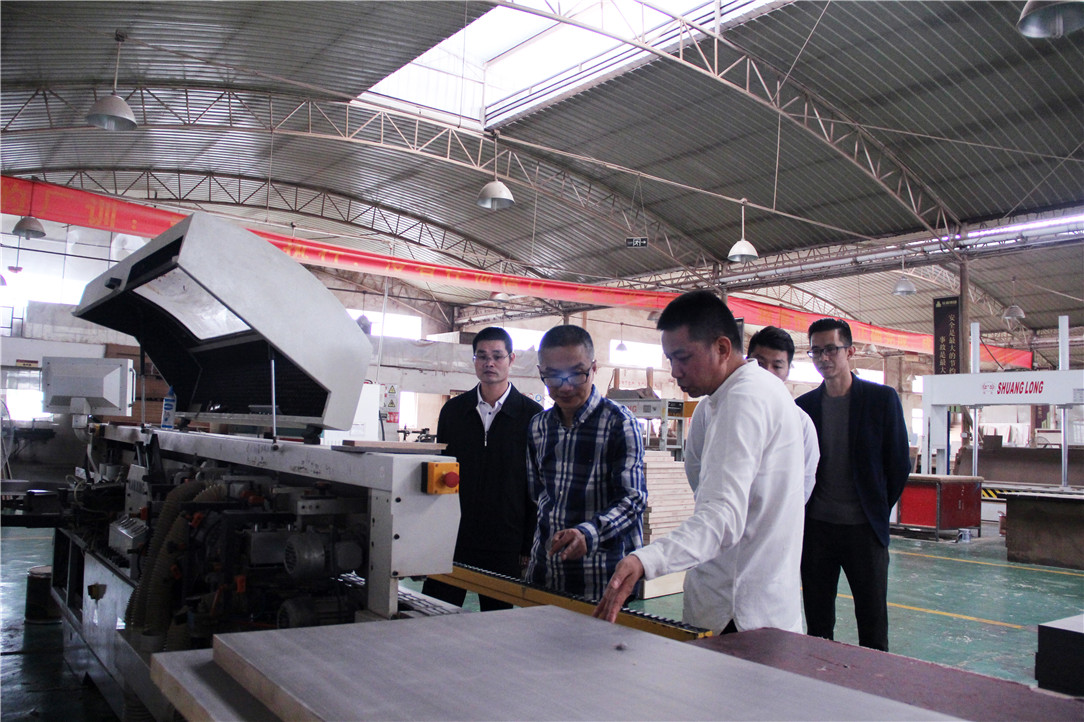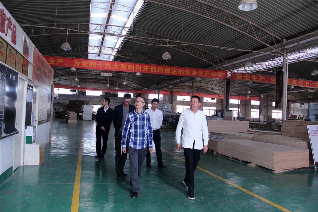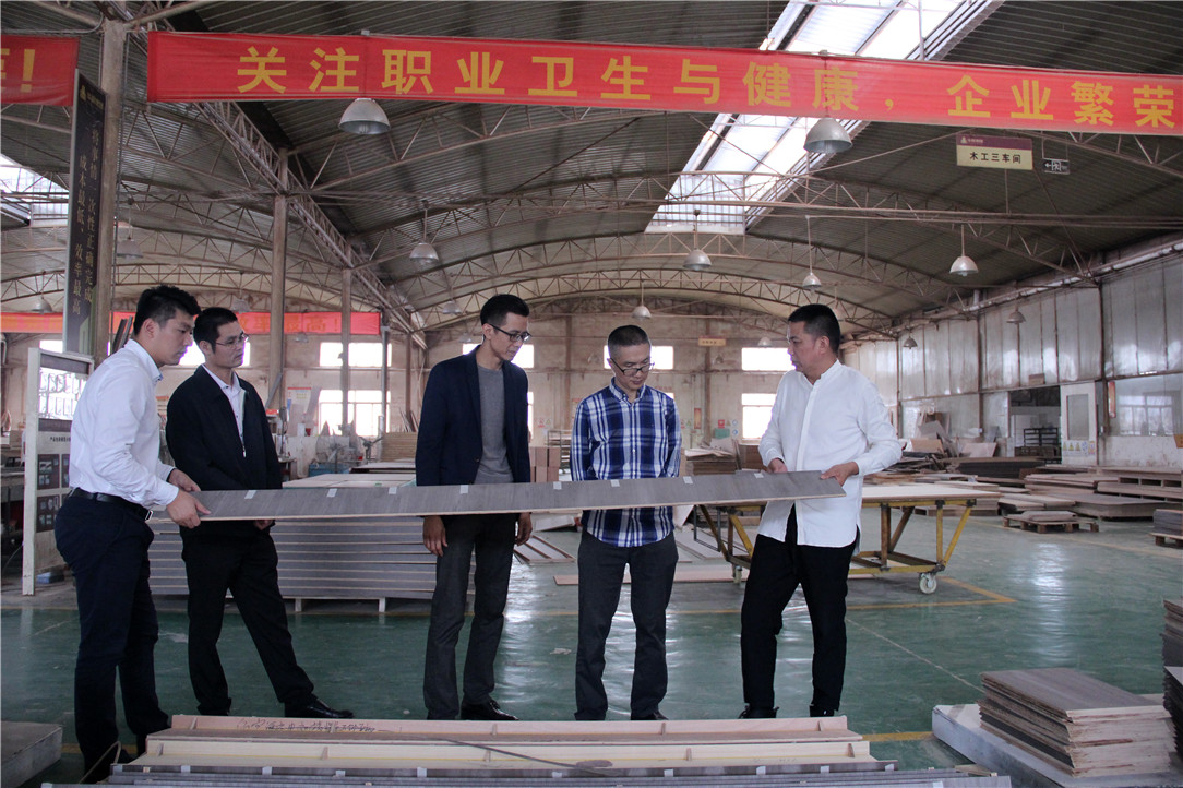 在杨景忠董事长的带领下,黄赞副主任、梅嵩科长首先深入bsports必一体育生产基地,了解bsports必一体育集团装修固装配套技术创新、标准化管理、环保节能等生产经营情况。
