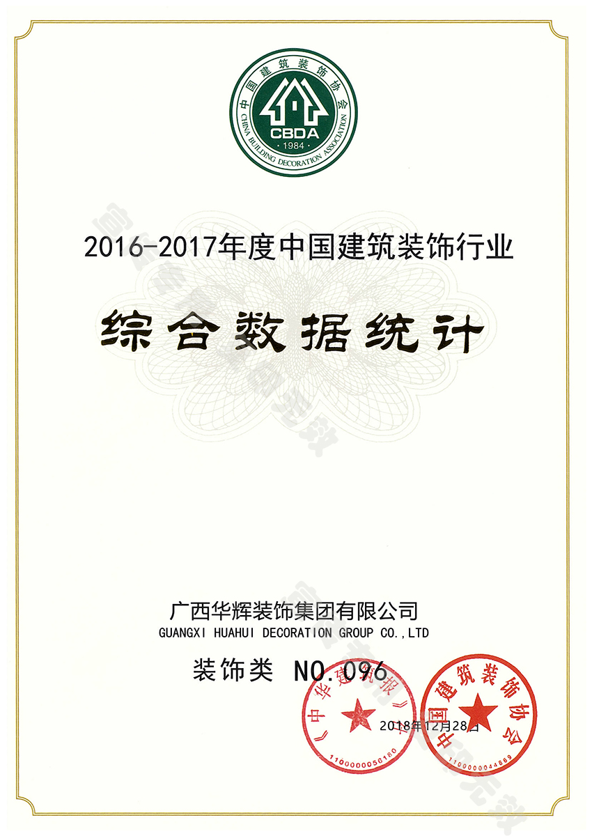 2019年1月9日,2016-2017年度中国建筑装饰行业综合数据统计结果揭晓,bsports必一体育装饰集团凭借强劲的综合实力,先进的施工技艺,优秀的管理能力,荣获中国建筑装饰行业百强企业。