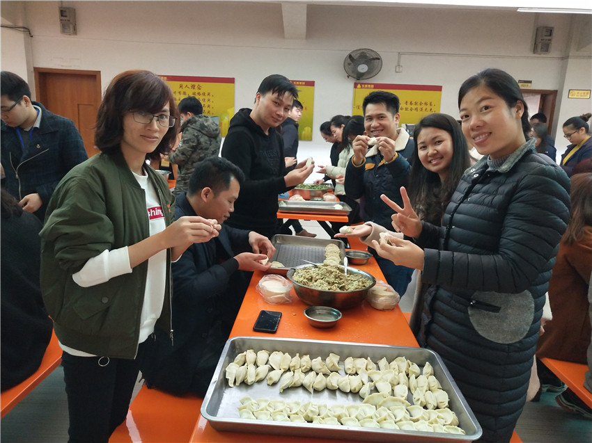 中午,集团饭堂化身欢乐温馨的包饺子现场,大家有说有笑,你追我赶地包饺子、吃饺子、吃汤圆,享受欢聚的幸福!