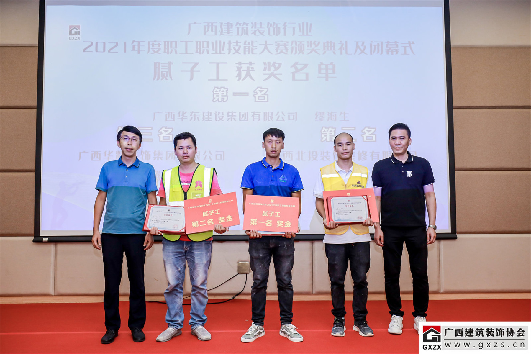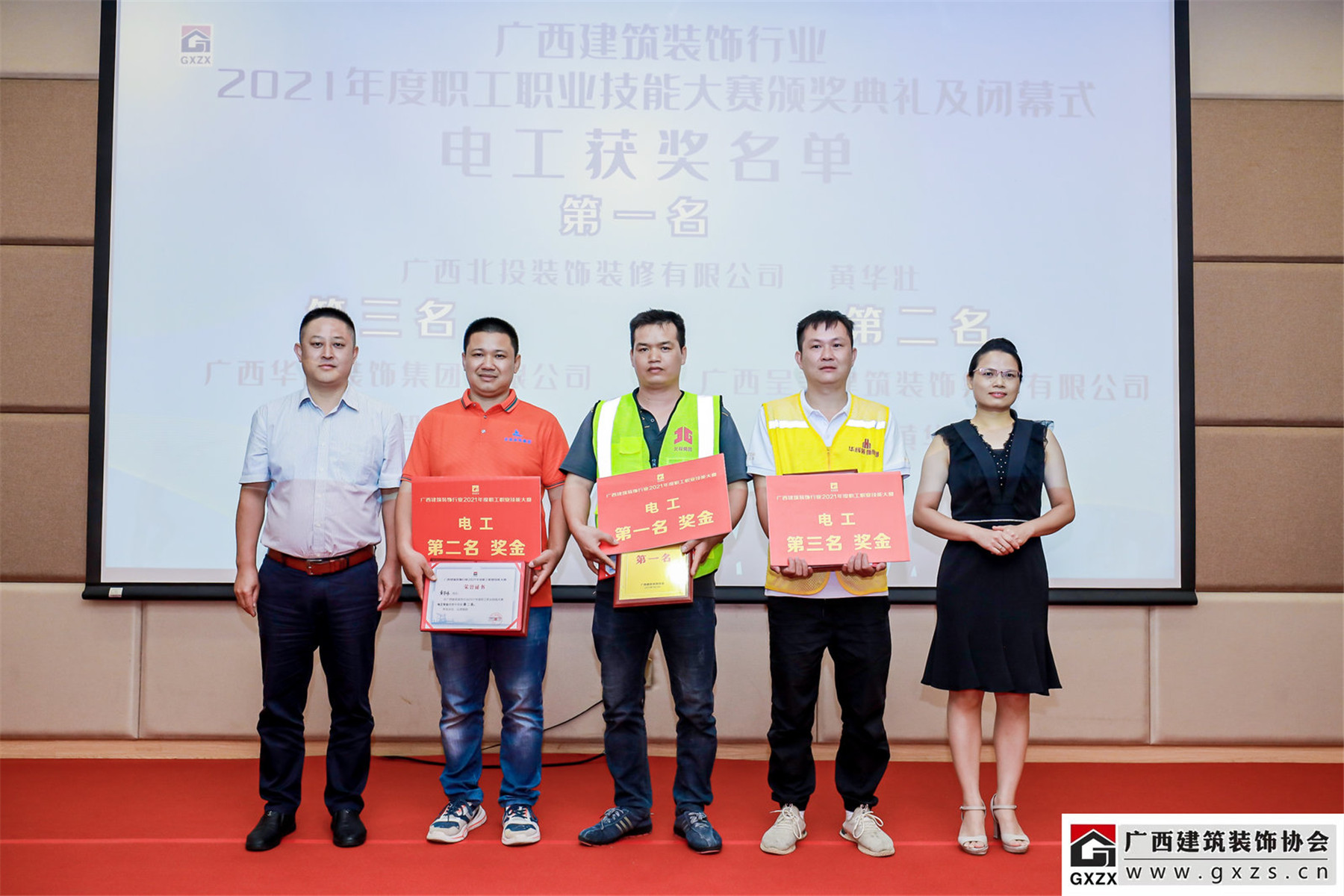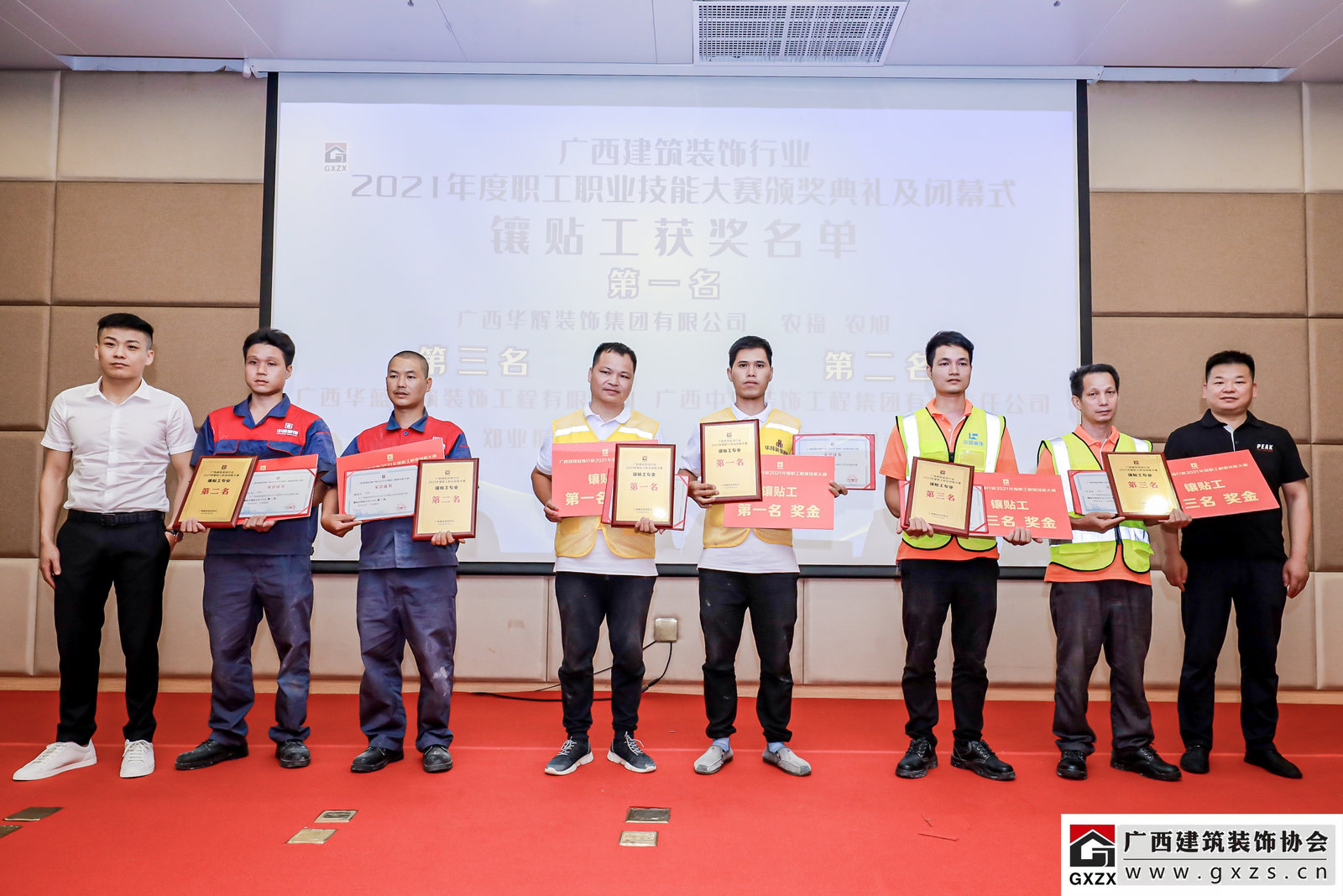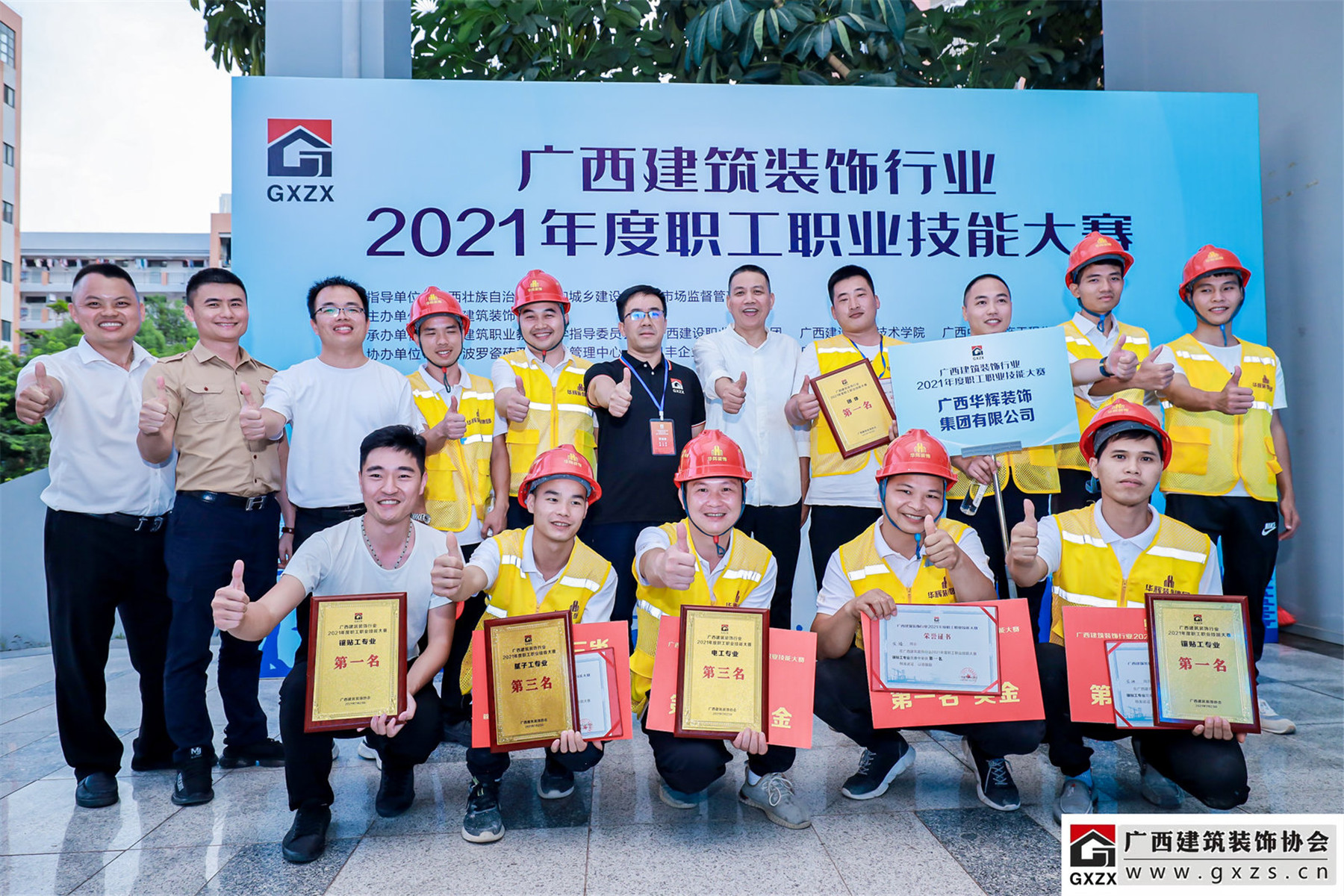 2021年7月23日,广西建筑装饰行业2021年度职工职业技能大赛在广西建设职业技术学院举行。bsports必一体育参赛选手荣获团体第一名且综合评分满分100分、镶贴工第一名、电工第三名、腻子工第三名的好成绩。
