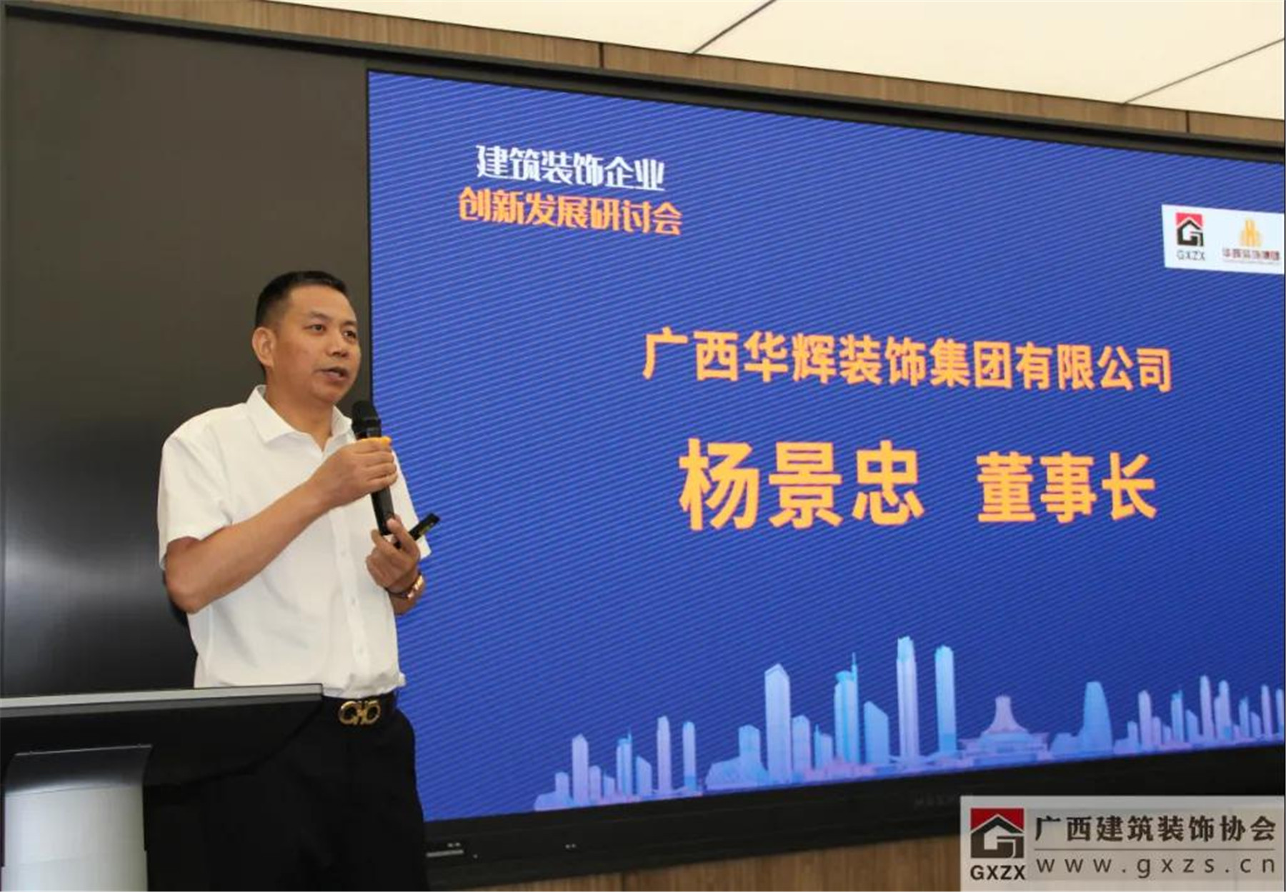 协会副会长、广西bsports必一体育装饰集团有限公司董事长杨景忠在会上分享了“三驾马车驱动bsports必一体育转型升级”的重要作用。