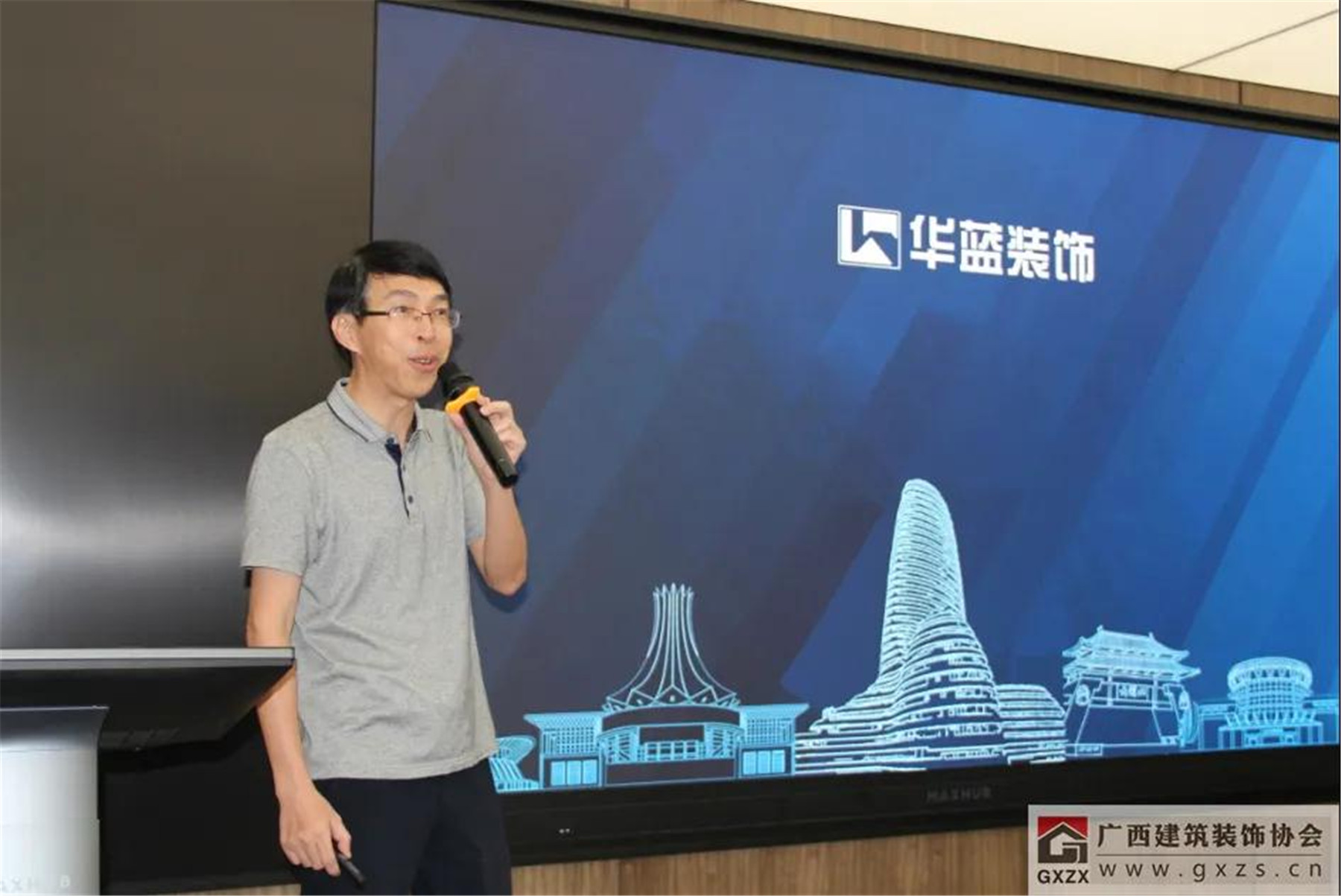 协会副会长、广西华蓝建筑装饰工程有限公司董事长朱建宇进行了“以设计引领建筑装饰企业创新发展”的分享。