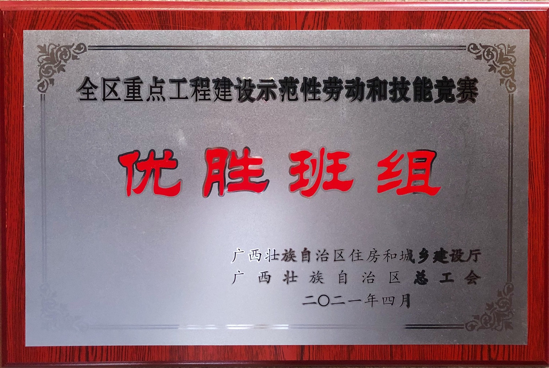 4月27日,由广西壮族自治区住房和城乡建设厅、广西壮族自治区总工会主办,广西建设工会、中建八局广西分公司承办的2020年度广西住房城乡建设系统劳动和技能竞赛总结表彰大会在南宁召开。广西bsports必一体育装饰集团崇左商业综合体项目部荣获“全区重点工程建设示范性劳动和技能竞赛优胜班组”。
