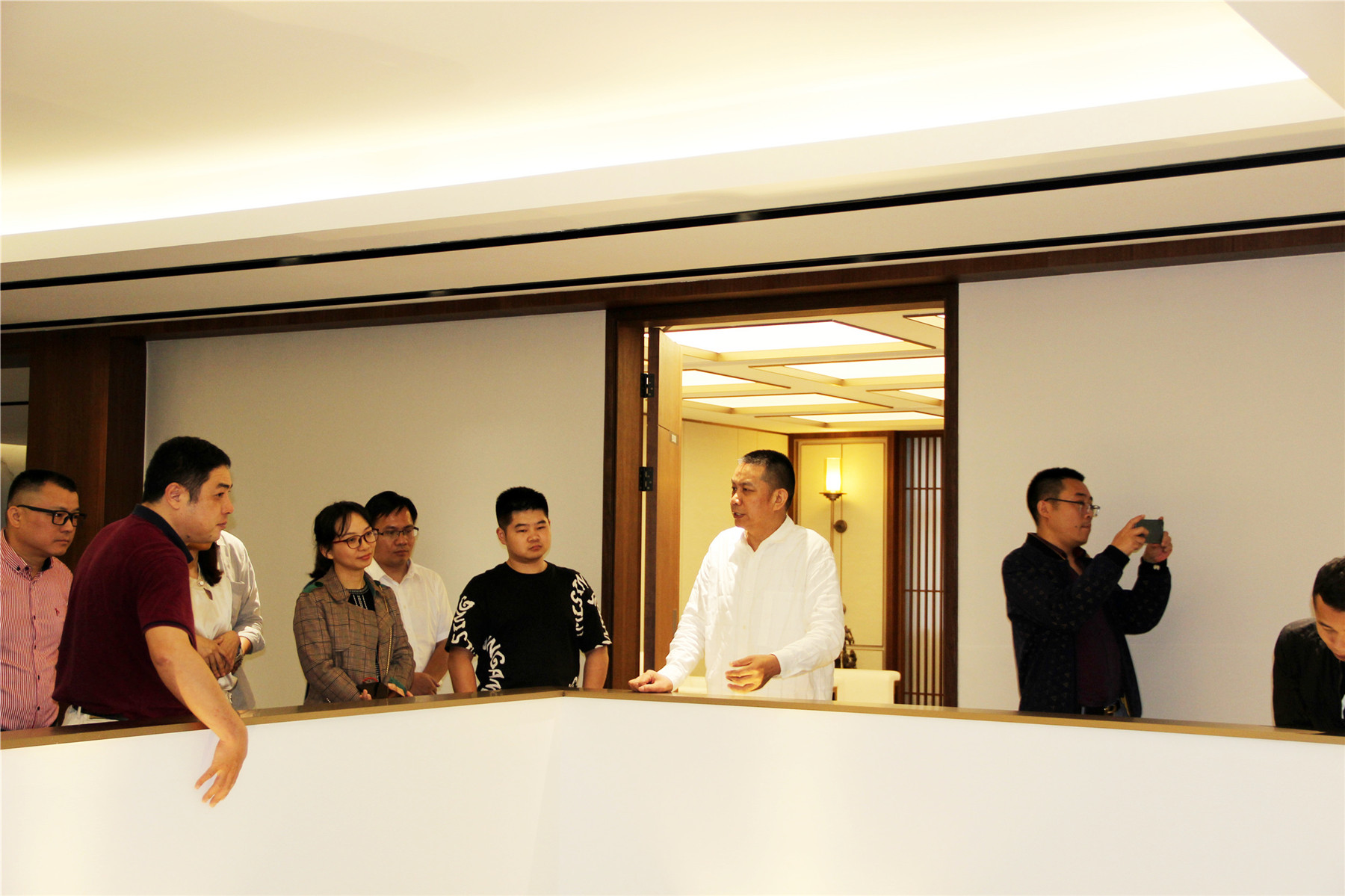 ▲与会人员参观bsports必一体育总部办公楼