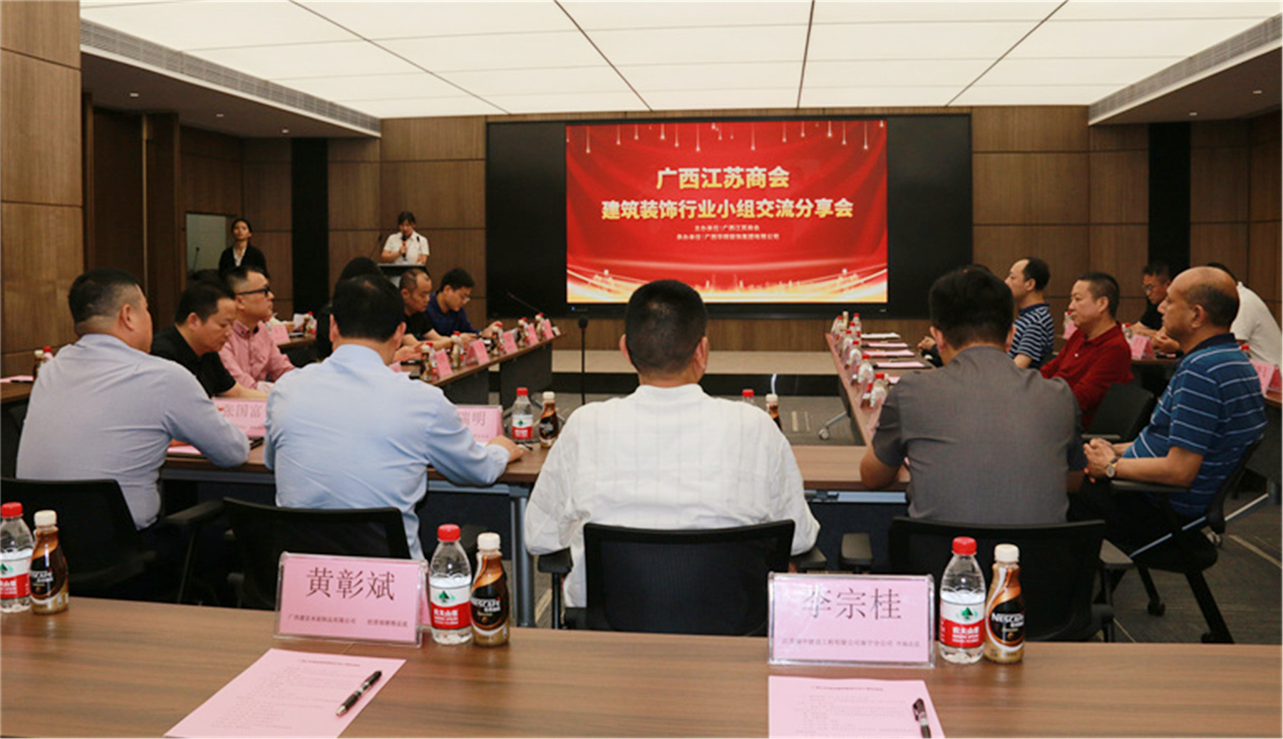 2021年4月28日,由广西bsports必一体育装饰集团赞助承办的广西江苏商会第四届建筑装饰行业小组第一次交流分享会,在bsports必一体育集团隆重举行。商会会长施瑞明、商会党支部书记张国富,商会执行会长、轮值会长杨景忠,商会执行会长杨勤伟,商会常务副会长、人民调解委员会主任王月霞,商会常务副会长徐敦华、赵满根、杜红方、叶东,商会副会长、轮值会长赵玉清,副会长王静、黄建平、吴军、管沙洲、罗国庆、卢华,副监事长王伟及商会理事、会员单位代表和驻桂苏商企业相关负责人等50多人参加交流分享会。