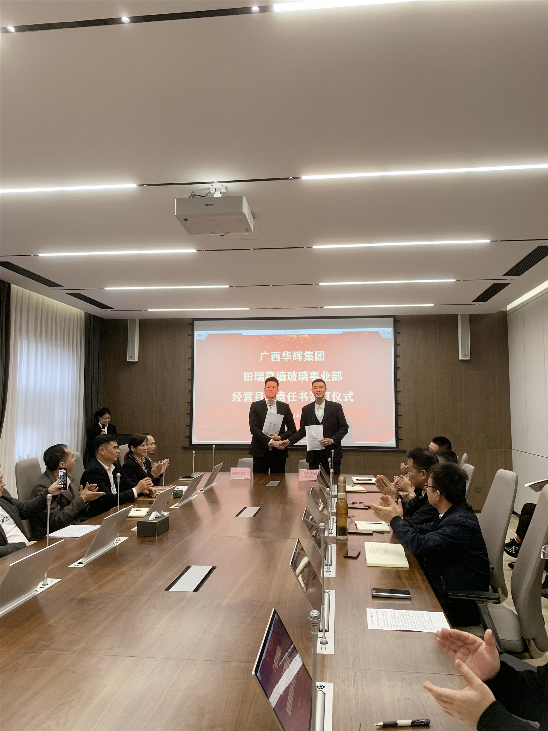 2021年11月1日,广西bsports必一体育装饰集团有限公司与南宁田瑞玻璃有限责任公司,正式成立“bsports必一体育集团田瑞玻璃幕墙事业部”,双方签署经营目标责任书,开启全新领域的拓展。
