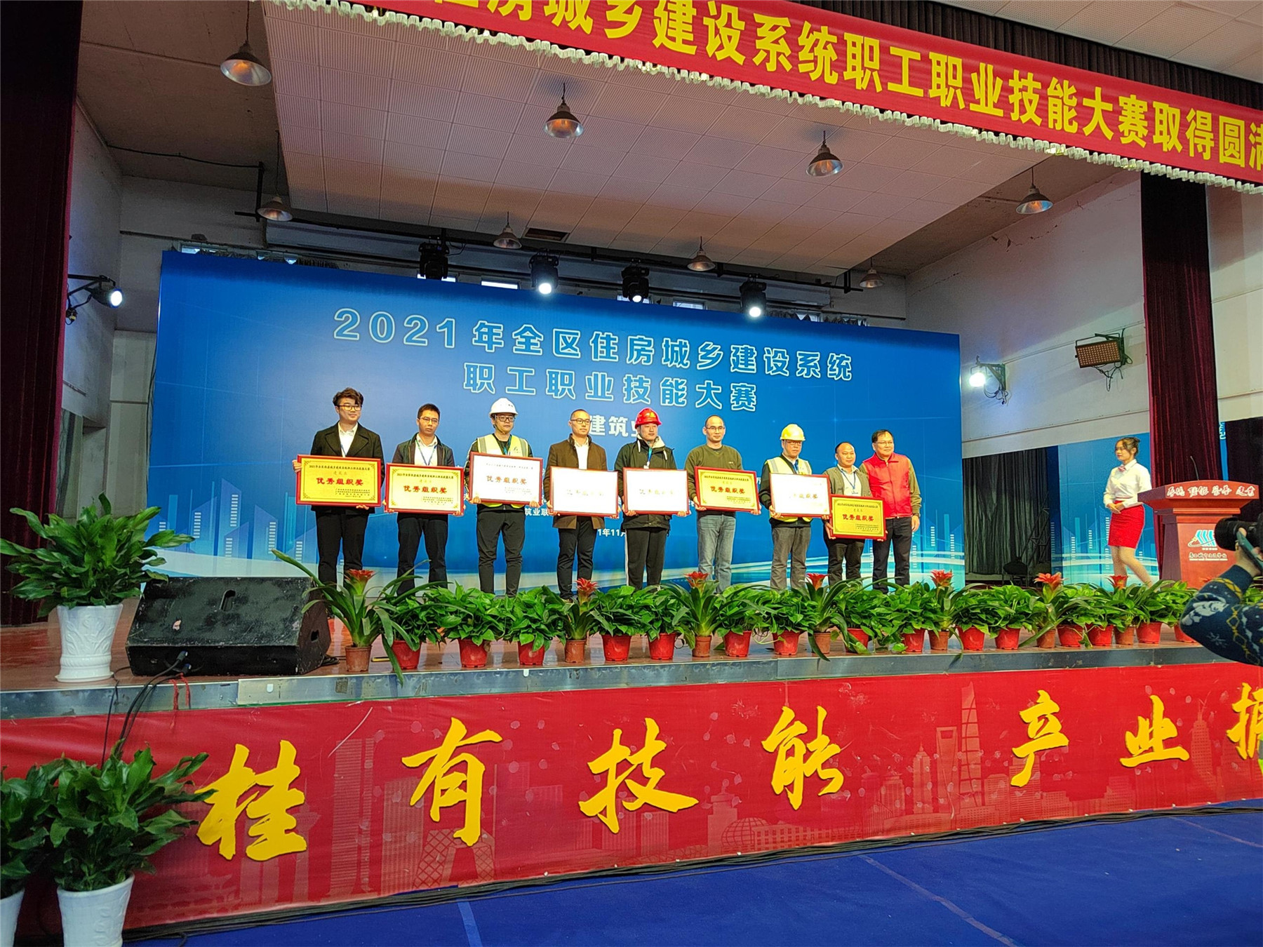 2021年11月17日,全区住房城乡建设系统职工职业技能大赛在桂林落下帷幕。bsports必一体育集团参赛选手荣获瓷砖贴面第一名的好成绩,集团荣获“优秀组织奖”。