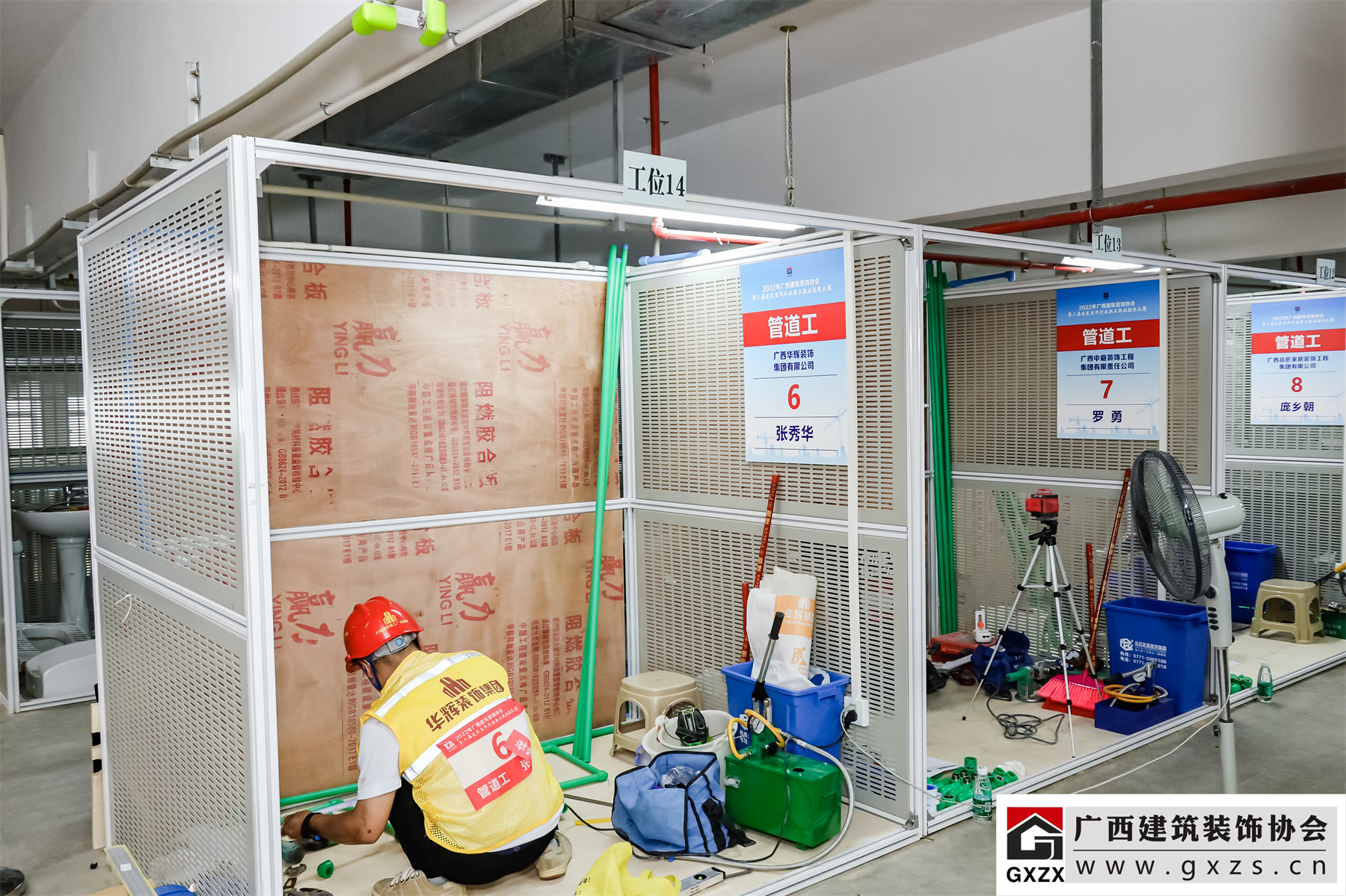 据悉,此次技能大赛由广西住房和城乡建设厅指导,广西建筑装饰协会主办;来自15家会员单位的63名选手参加腻子工、瓷砖贴面、精细木工、电工、管道工等5个项目的竞赛;分为理论(笔试)与实操考核两项内容,理论考核占比30%,实操考核占比70%。
