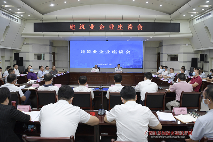 2022年8月19日,自治区住房城乡建设厅召开建筑业企业座谈会,深入贯彻落实“疫情要防住、经济要稳住、发展要安全”重要要求,全面落实国家、自治区稳住经济决策部署,以及2022年全区年中工作会议精神,了解全区建筑业企业发展情况,更好更快促进全区建筑业高质量发展。自治区住房城乡建设厅党组书记、厅长唐标文出席会议并讲话,自治区住房城乡建设厅党组成员、副厅长潘国雄主持会议。