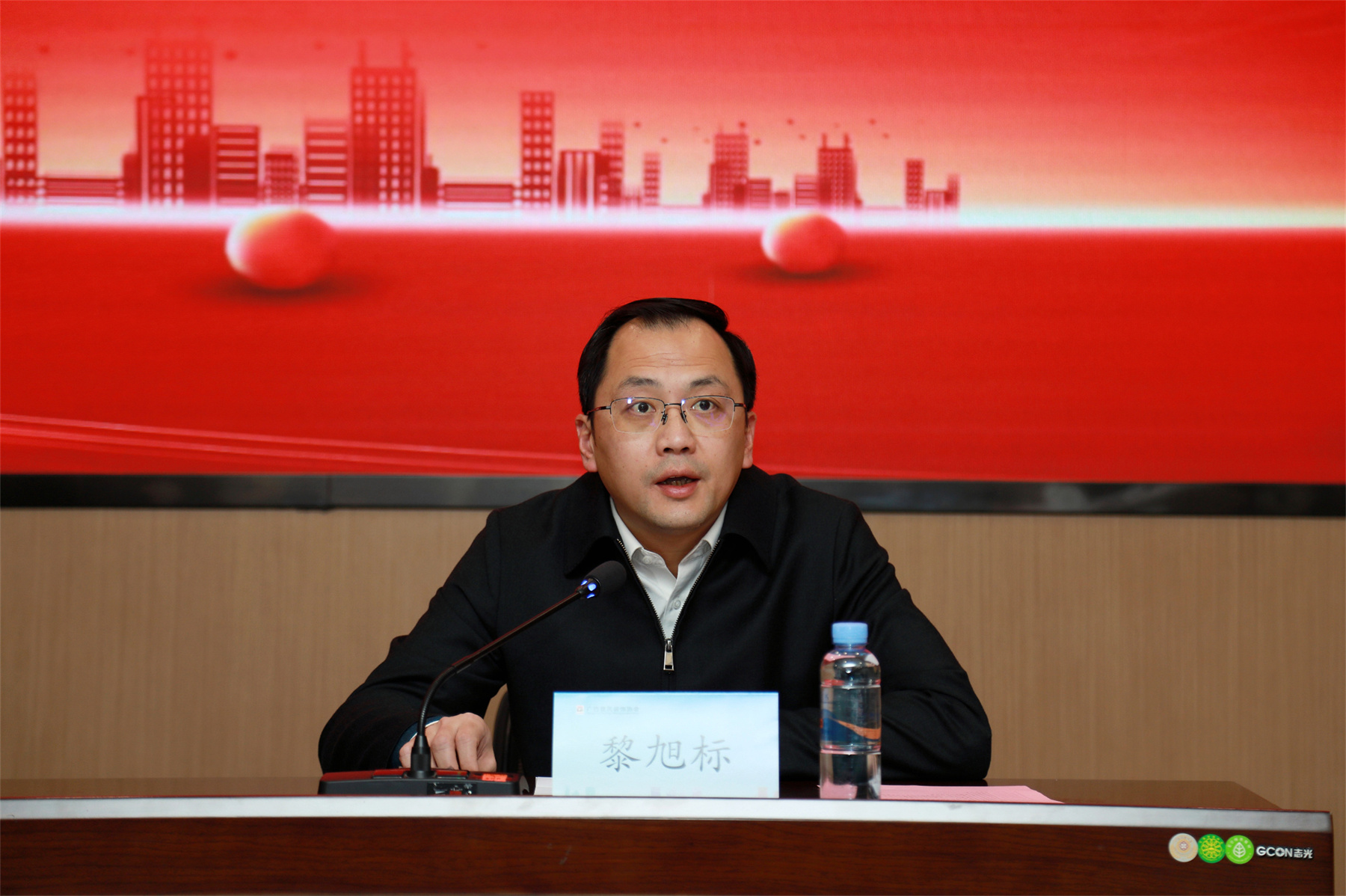 ▲广西住建厅建管处处长黎旭标在会上致辞