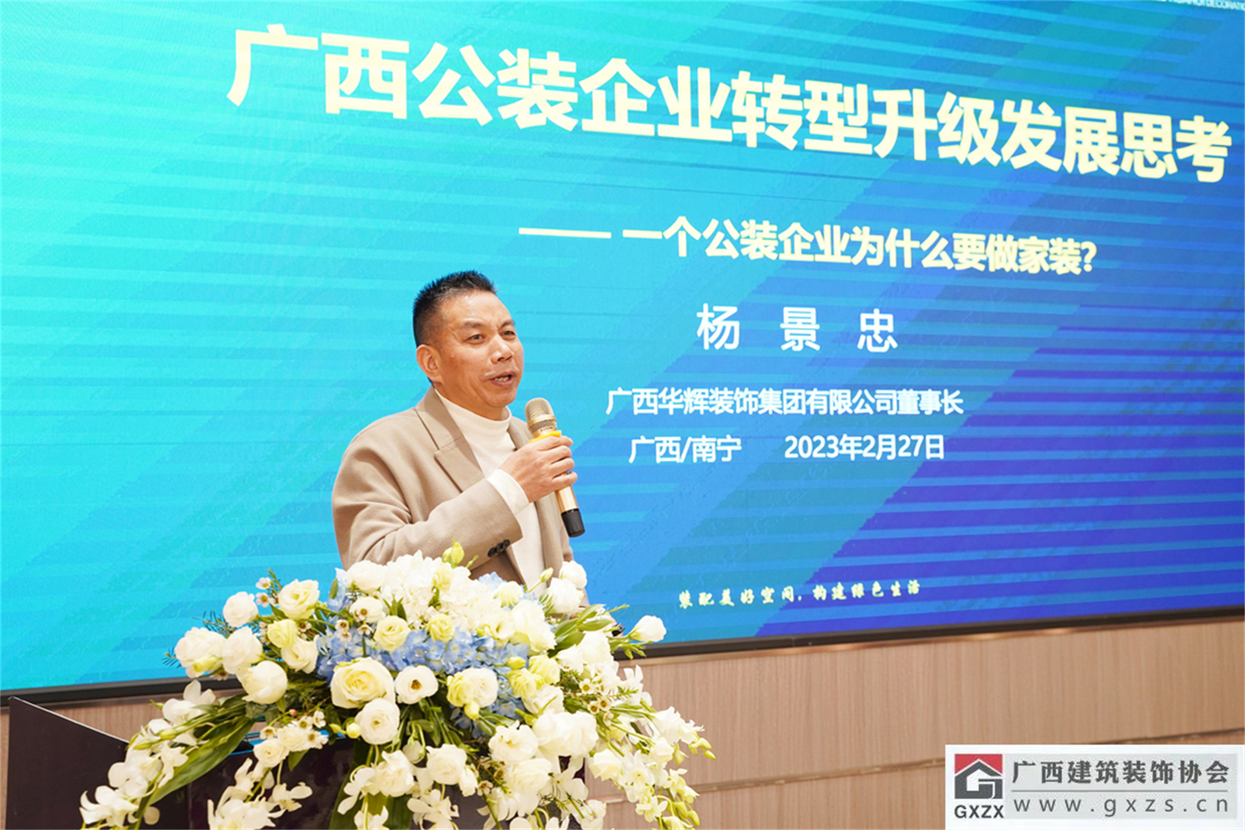 杨景忠作了《广西公装企业转型升级发展思考》的分享,指出:2022年,bsports必一体育拓展了别墅奢装新赛道,开启公装、家装双轨道运营模式。2021年,bsports必一体育做了充分的市场调研,发现了家装行业的四大痛点,结合bsports必一体育的优势:专做五星级酒店、专做五A级写字楼、专做大型公共建筑,bsports必一体育的最终定位为家装领域的高档客户,由bsports必一体育别墅奢装公司运营。bsports必一体育别墅奢装将为客户带来4大“确定性”。