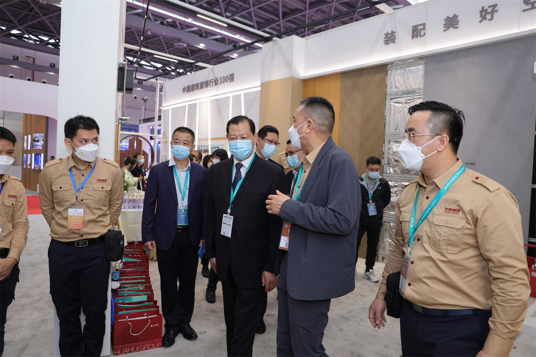 ▲2022年11月25日,中国建筑装饰协会会长王中奇,莅临2022年中国—东盟建筑业暨高品质人居环境博览会—bsports必一体育展厅调研指导