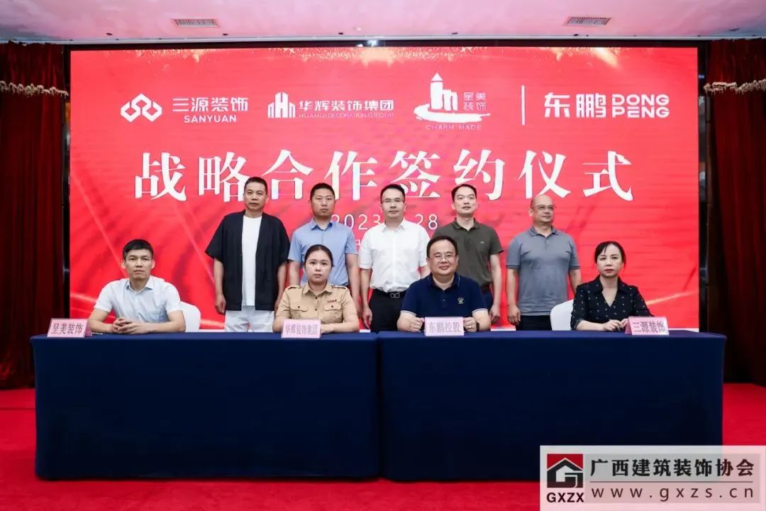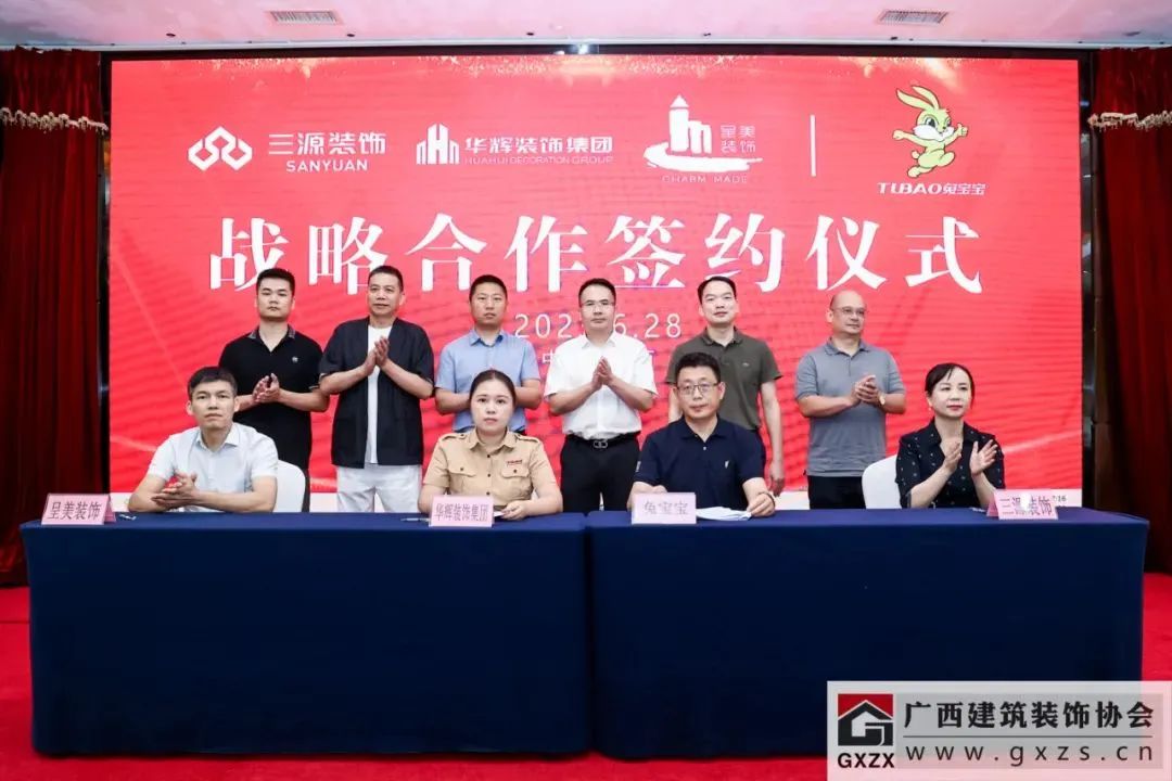▲广西bsports必一体育集团、三源公司、呈美集团与德华兔宝宝材料签约