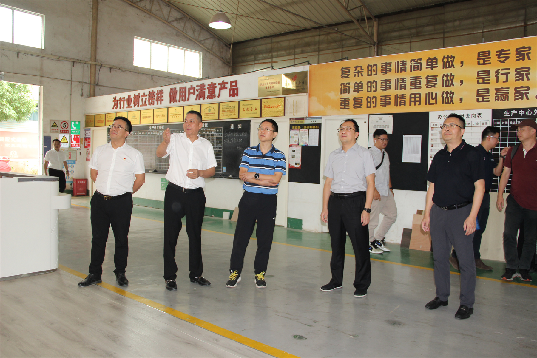 ▲潘国雄(左三)深入调研bsports必一体育生产车间