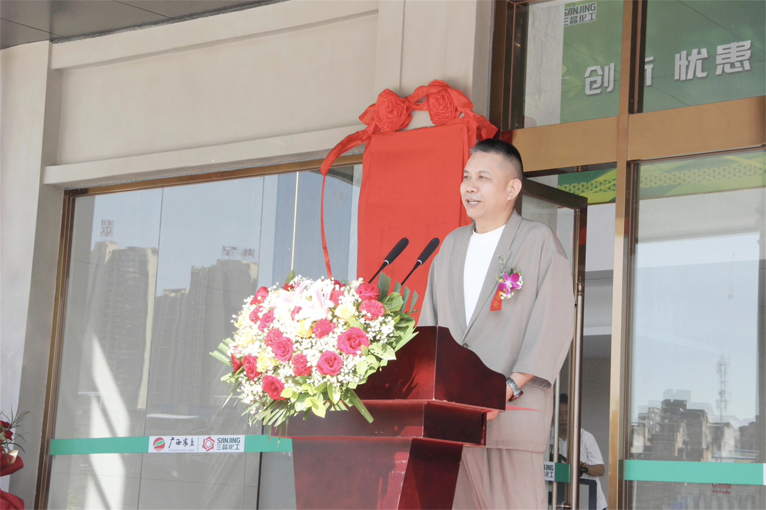 揭牌仪式上,广西化工研究院公司党委书记、董事长、院长赖开平致辞。化工院成立至今,始终坚持创新赋能、科学发展,将科技创新作为促产兴院的法宝,强科研,促转化,兴产业,各项事业取得长足进步,如今已构建以“名优产品为龙头、多产业板块齐头并进”的产业格局。科技园办公区以及科技综合楼的正式揭牌启用,是化工院发展史上具有里程碑意义的一件大事,标志着化工院整体创新能力实现了跨越式提升,企业发展迈出了更加坚实的一步。化工院将坚持以习近平新时代中国特色社会主义思想为指导,贯彻落实习近平总书记关于广西工作论述的重要要求,深入学习贯彻党的二十届三中全会关于“深化国资国企改革”精神,贯彻落实广西农垦集团的战略部署,紧盯营收、利润目标任务,立足产业拼效益,加快木薯多糖铁新产品市场布局,有序加快产品研发引领产业发展,坚决完成全年经营目标任务。