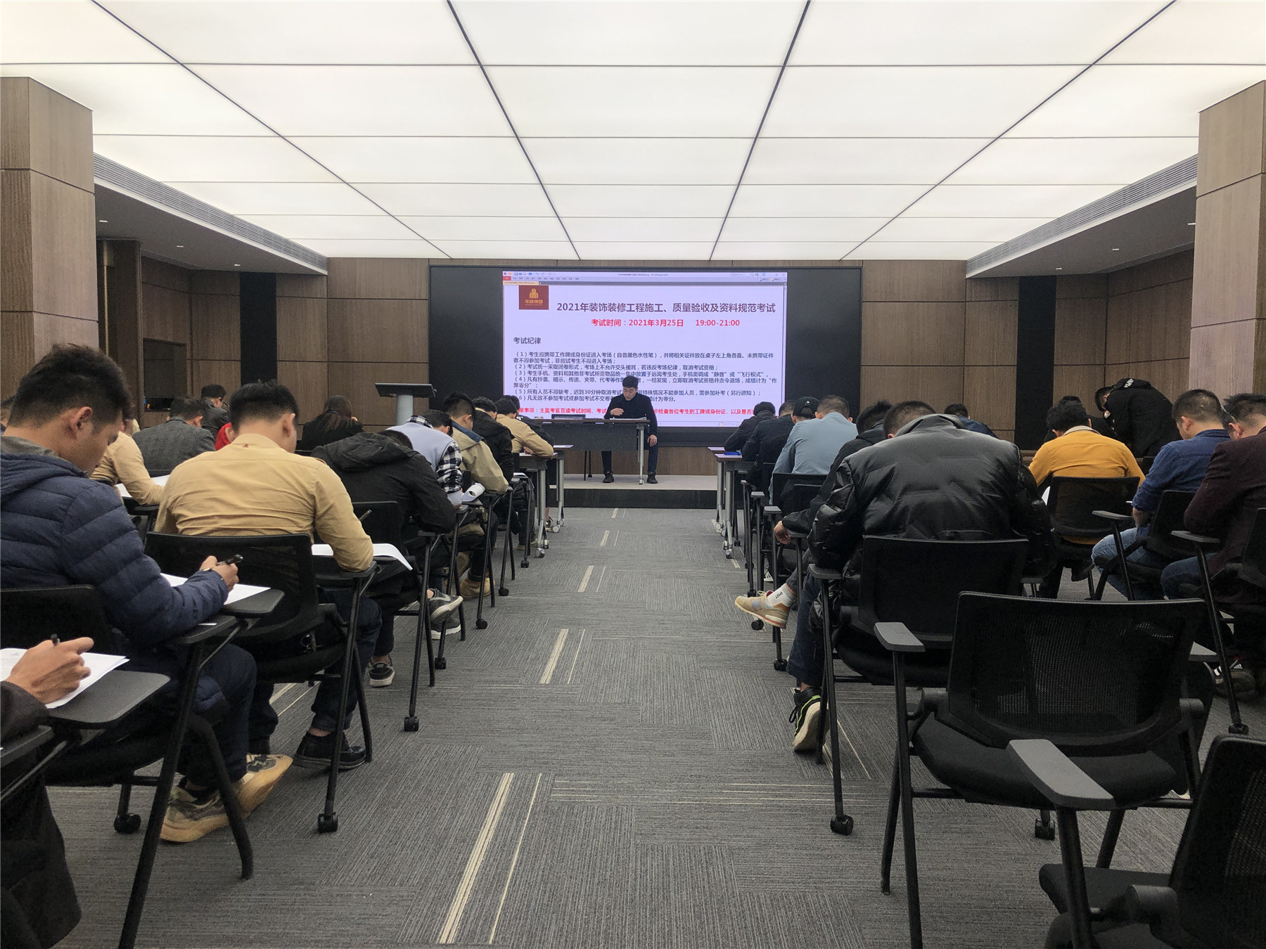 2021年3月25日,bsports必一体育集团开展第二批装饰装修施工、质量验收及资料规范考试,进一步推动集团装饰工程标准化建设,确保项目管理人员深入了解和掌握工程管理标准化要求。