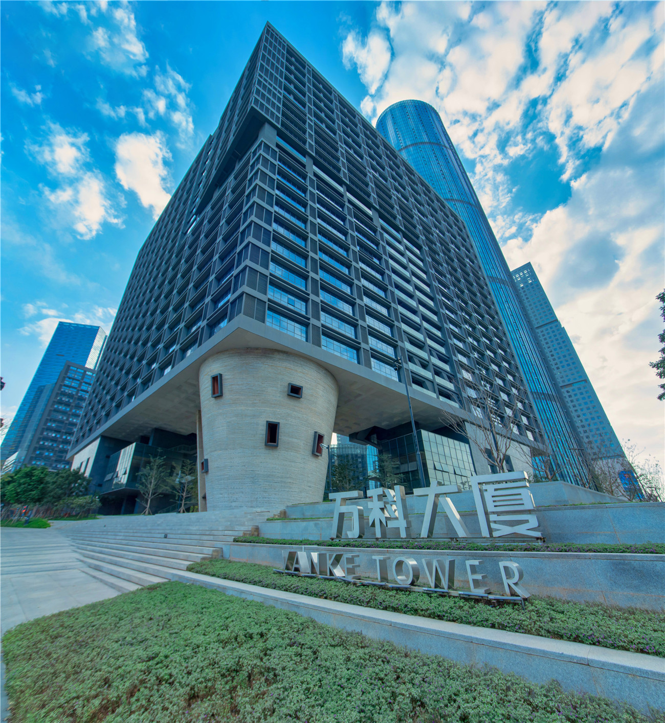南宁万科大厦是万科布局全国的第21座写字楼,位于五象新区总部基地,独创双L型板式结构通风采光具佳,打造商务办公集群“漂浮的创想商务集群”。该项目荣获建筑结构类“华彩金奖”,被誉为“最有情怀的写字楼”,是南宁市2019年重大项目开竣工现场会第七批项目之一。